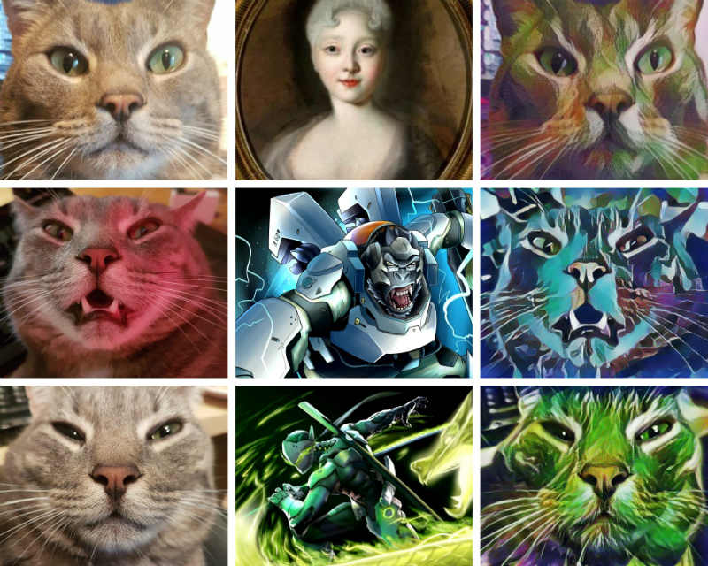 With only a few hours left on December 23rd, I decided to create a last-minute Christmas gift. I selected some pictures of my cat, used a pre-trained Neural Style Transfer model to create an artistic version of them, and merged the transformed pictures into a single image.